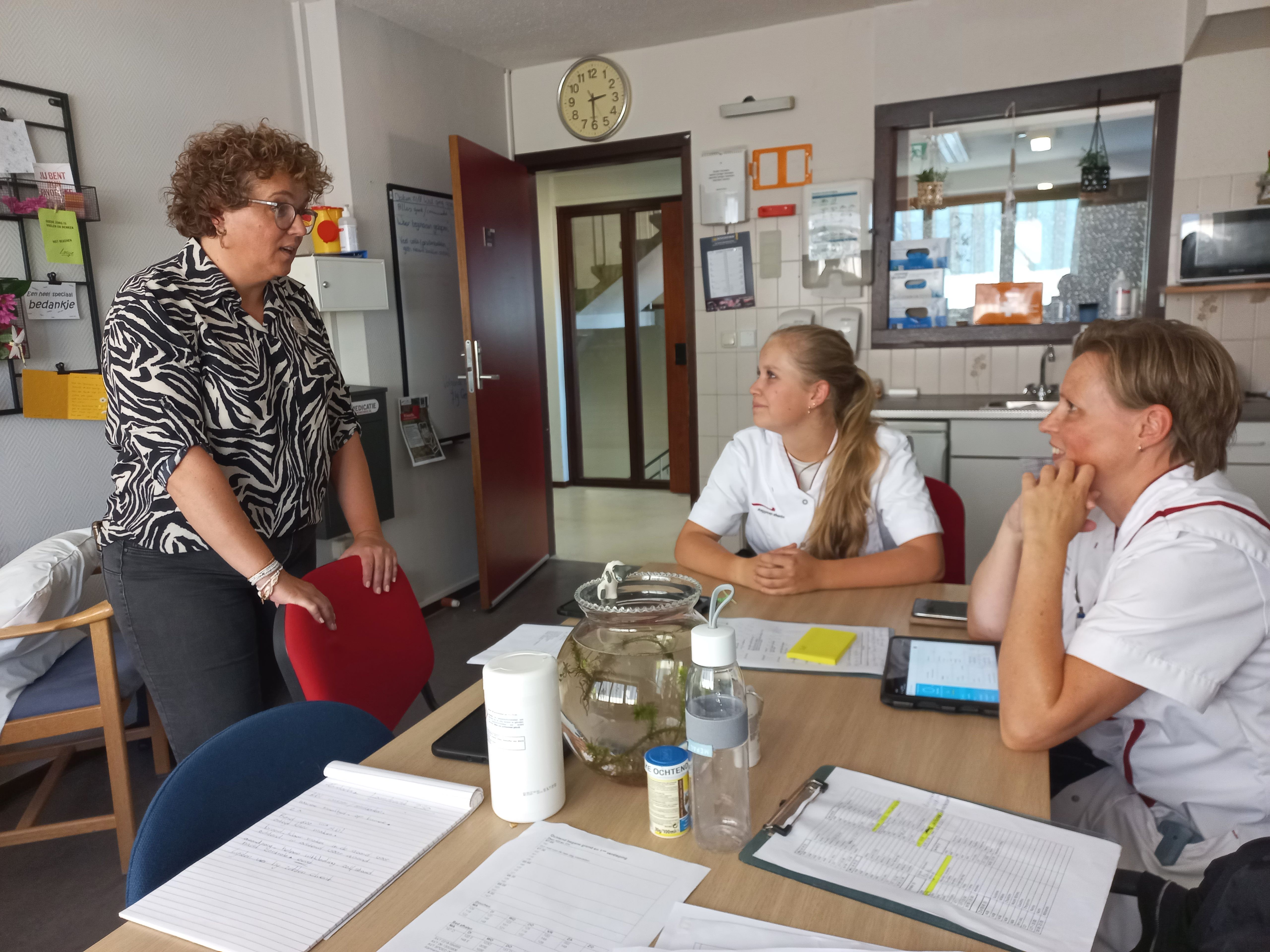 ‘Als teamleider ben je verantwoordelijk voor verschillende teams die in de zorglocatie werken. Van teams met zorgverleners, huishoudelijke medewerkers en welzijnsmedewerkers. Het zijn grote teams die ieder hun eigen manier van werken hebben. Wat ik ontzettend belangrijk vind in mijn rol is zichtbaar zijn. Door bewust en benaderbaar in de locatie rond te lopen, hoor en zie je veel en word je een betrokken teamleider. Alleen dan kun je oog hebben voor de medewerkers zelf en hun veranderde vraag in wat zij nodig hebben om de zorg te kunnen verlenen.’