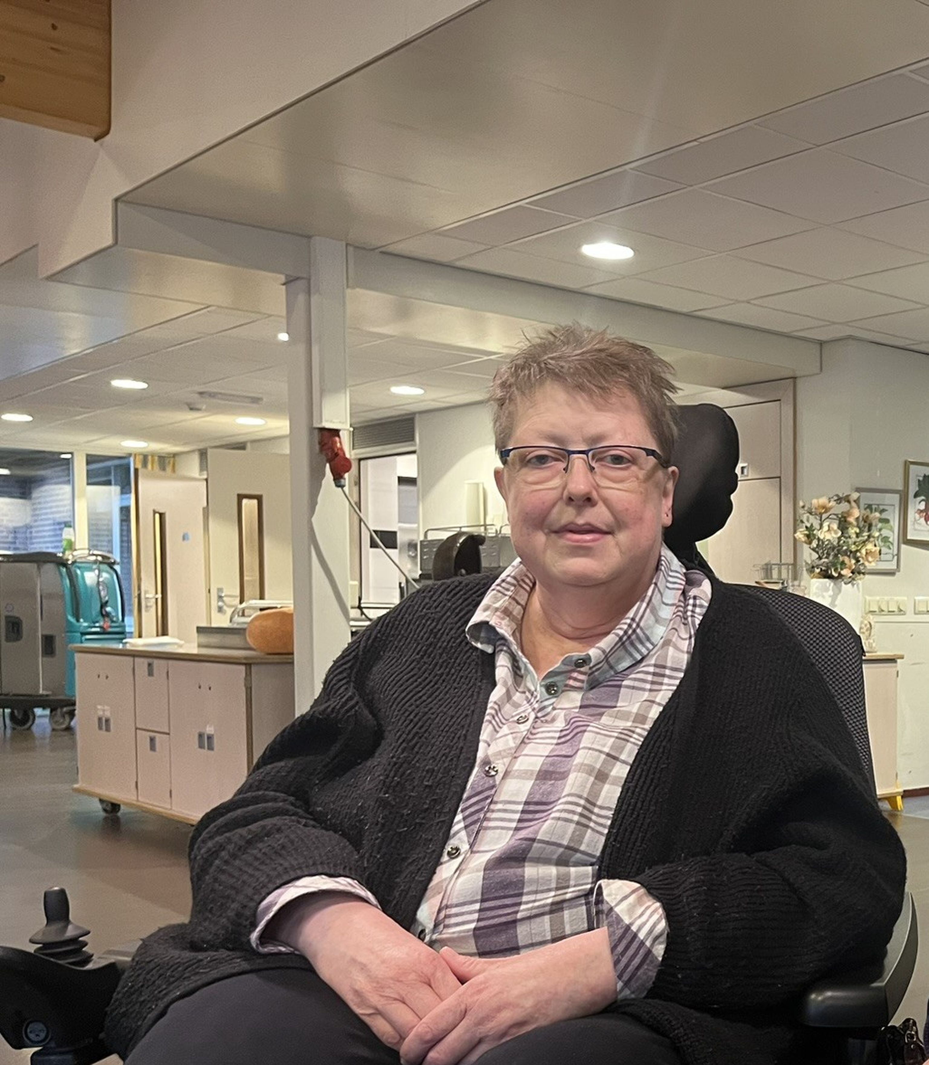 'Ik kan de hele dag voor de tv zitten, maar dat maakt mij niet gelukkig. Ik ben blij dat ik deze vrijwilligerstaken kan doen. Het geeft mij iets te doen. Toen ik in Elim kwam wonen, voelde ik me eerst doelloos. Ik ben toen in gesprek gegaan met de psycholoog en heb aangegeven dat ik graag wat wilde ondernemen en betekenen. Mijn lijf werkt niet meer zo goed, maar met mijn hoofd is niets mis. De rol van de cliëntenraad vind ik heel boeiend, ik kan weer een beetje op niveau meedenken over beleid en plannen die gemaakt worden voor een woonlocatie waar ikzelf onderdeel van uitmaak. Het doet me goed. Ik voel me weer van betekenis.”