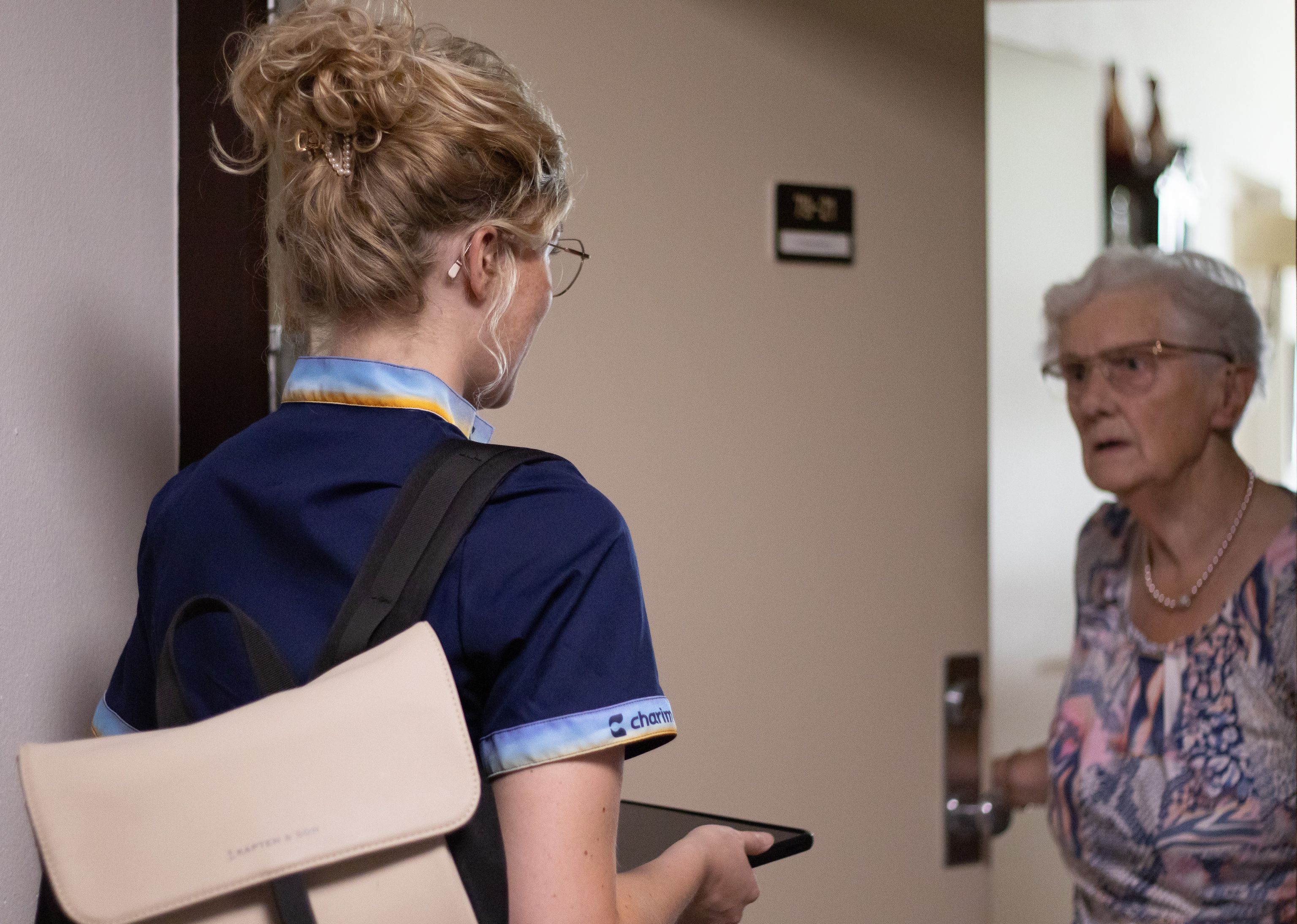 Anne Veenhof werkt als Verzorgende en Eerst Verantwoordelijk Verzorgende bij de wijkverpleging van Charim. Bijna twee jaar is ze onderdeel van het team dat mensen thuis ondersteunt in de dagelijkse zorg. Daarnaast werkt ze mee aan de planning om te zorgen dat de routes die het team maakt én de ondersteuning die de cliënten ontvangen bijdraagt aan een fijne werkdag.
